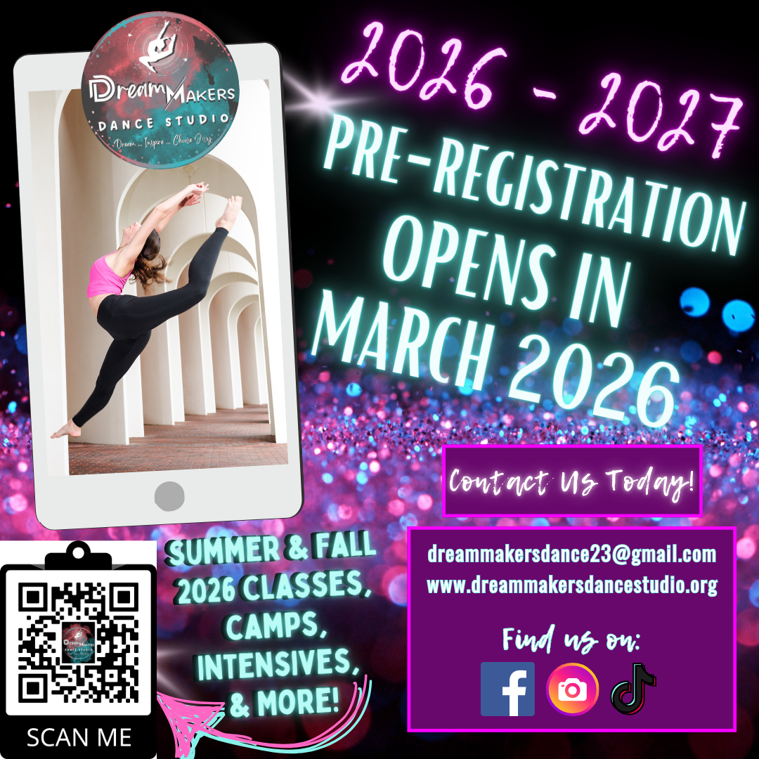 Here at DreamMakers, our mission is to provide a safe space and supportive environment where our students can express themselves through the art of dance. We strive to inspire creativity, passion, and discipline in our dancers while fostering a sense of community and teamwork. Our goal is to help each student achieve their full potential, both on and off the dance floor, by providing high-quality instruction with a degreed and professional faculty, personalized attention, and many opportunities for growth and performance. Dance is much more than an intense sport and art form, so through our commitment to building a well-rounded dance education program, we will teach life skills — dedication, hard work, discipline, motivation and teamwork all while aiming to instill confidence, self-esteem, and a lifelong love of dance in our students.